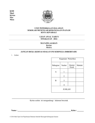 Contoh Muka Depan Kertas Ujian