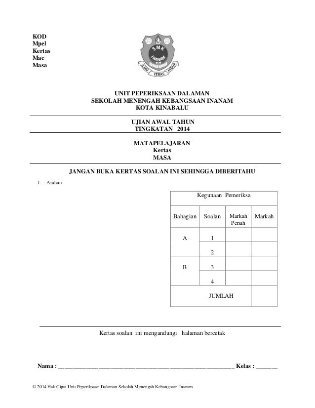 Contoh Muka Depan Kertas Peperiksaan Pdf